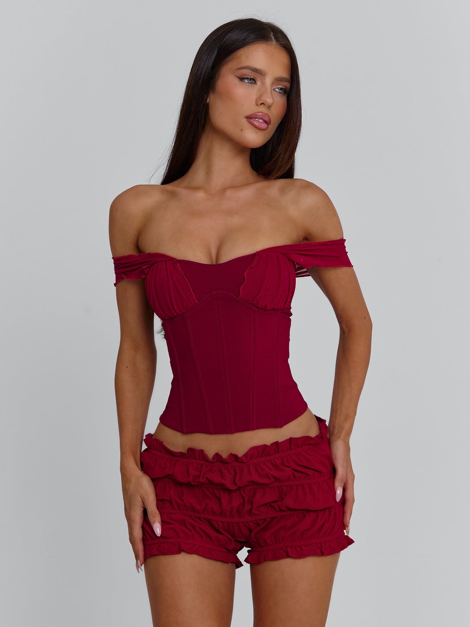 A statement piece with a touch of romance, our Amaya Top in Deep Red is designed to sculpt and flatter.