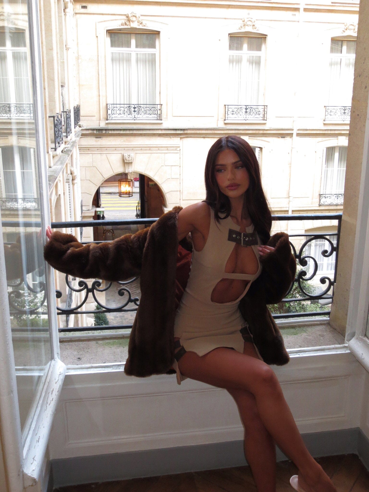 Turn up the heat in the 'Murphy Mini Dress' in Beige!